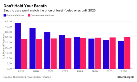 電気自動車は10年以内にガソリン車より割安に、電池下落で