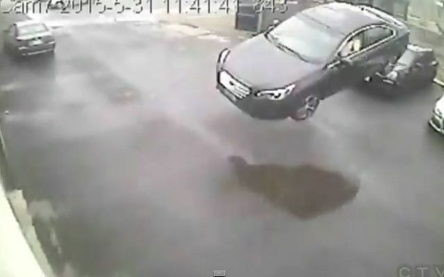 スバル・レガシィ新型、カナダで大事故 塀を飛び越えて壁に激突